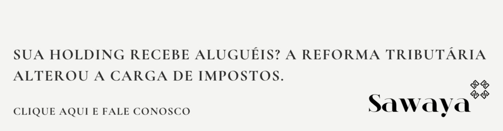 A Reforma Tributária exige que as empresas imobiliárias e holdings familiares revisem urgentemente seus contratos e modelos de negócio. Se você investe em imóveis e recebe aluguéis na pessoa jurídica, não espere as novas alíquotas entrarem em vigor. Entre em contato com o Sawaya Advogados e descubra como o nosso planejamento tributário pode proteger a rentabilidade do seu patrimônio.