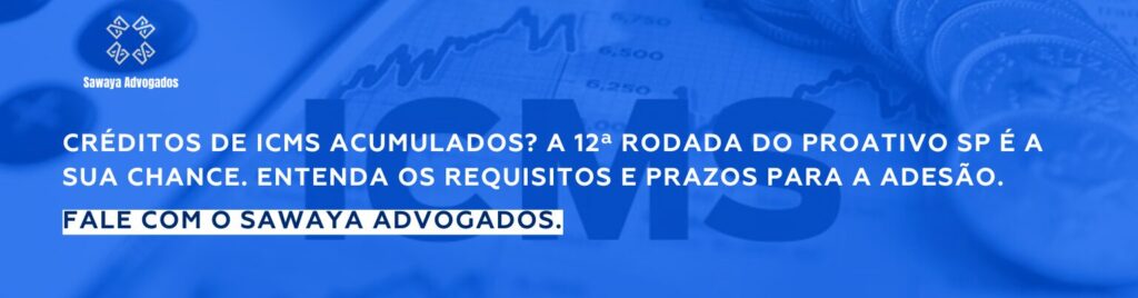 Sua empresa tem créditos de ICMS acumulados e deseja participar da 12ª Rodada do ProAtivo? Entre em contato com o Sawaya Advogados para uma análise detalhada e auxílio no processo de adesão.